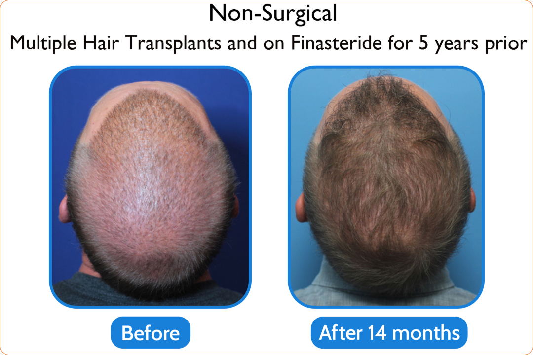 Thinning native hair, and hair grafts can grow thicker and longer, even in hair transplantsthat are years old. Dormant hair follicles or follicles that have not fully miniaturized canbe “awakened” to grow hair again, even in patients who’ve taken finasteride for years.