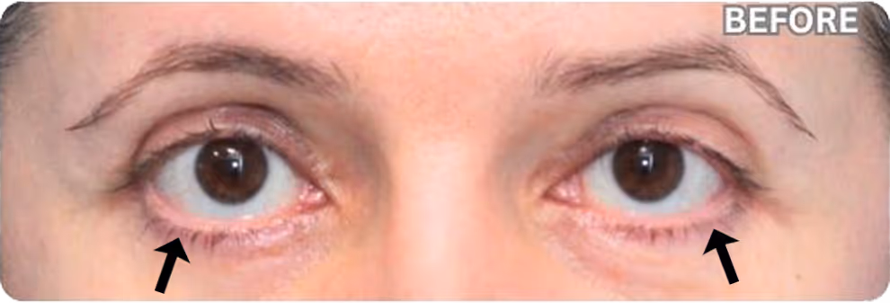 Rounding of the eyes can happen after common lower eyelid surgeries where skin is removed in an effort to treat wrinkles. A specialized approach is needed to address the skin shortage, add support, and lift the lower eyelids back to a natural position.